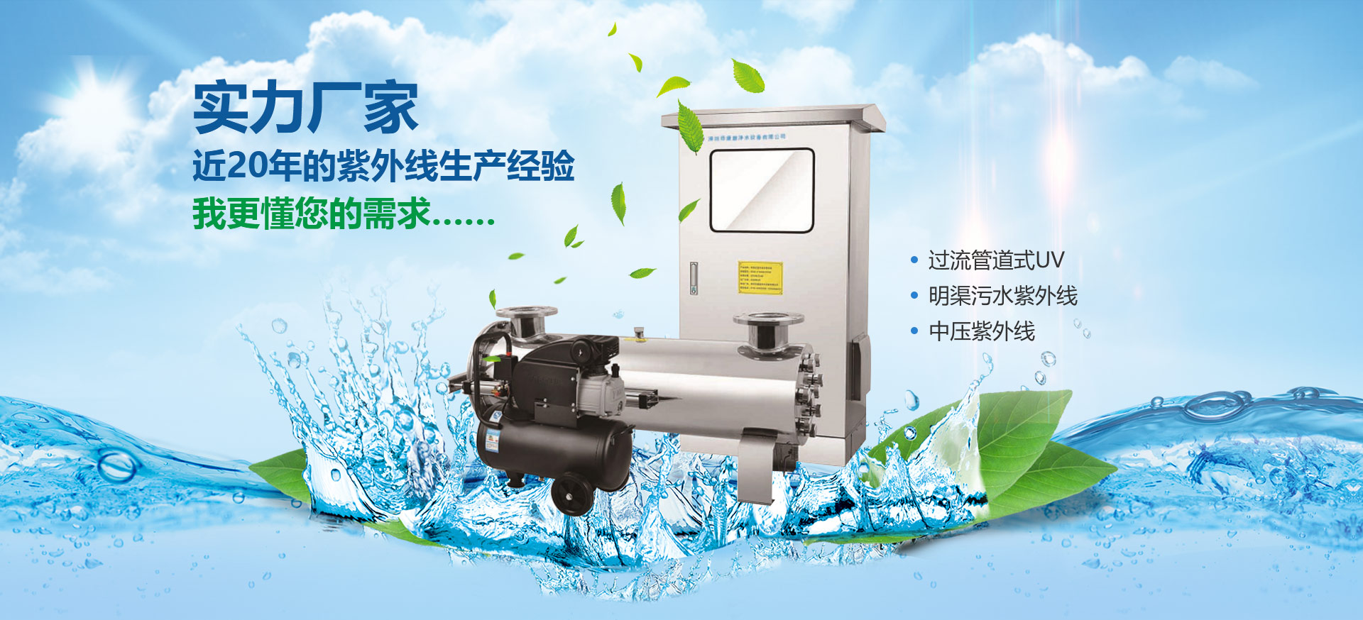 紫外線消毒設(shè)備:廣泛用于凈水消毒、市政供水、酒店用水、泳池水、生活污水、循環(huán)水、養(yǎng)殖用水等各行業(yè)水質(zhì)殺菌消毒……